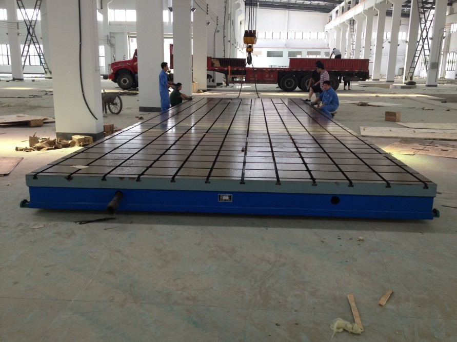 焊接平臺(tái)產(chǎn)品別名:鑄鐵焊接平板鑄鐵焊接平臺(tái)劃線平板 檢驗(yàn)平板 測(cè)量平板 裝配平板 大型鑄鐵平板 大型鑄鐵平臺(tái) 焊接平臺(tái)按GB/4986-85的標(biāo)準(zhǔn)制造,產(chǎn)品制成筋板式和箱體式,工作有長(zhǎng)方形,材料HT200,工作面采用刮研工藝,工作面上可加V型、T型、U型槽和圓孔、長(zhǎng)孔等。平板是用于工件檢測(cè)或劃線的平面基準(zhǔn)器具。平板安裝應(yīng)調(diào)至水平、負(fù)荷均分布于各支點(diǎn)上,環(huán)境溫度(20±5℃)使用時(shí)應(yīng)避免振動(dòng)。 焊接平臺(tái)用途:用于機(jī)械、發(fā)動(dòng)機(jī)的動(dòng)力實(shí)驗(yàn),設(shè)備調(diào)試,具有較好的平面穩(wěn)定性和韌性,表面帶有T型槽,可以用來固定實(shí)驗(yàn)設(shè)備。 焊接平臺(tái)材質(zhì):高強(qiáng)度鑄鐵HT200-300工作面硬度為HB170-240,經(jīng)過兩次人工處理(人工退火600度-700度和自然時(shí)效2-3年)使用該產(chǎn)品的精度穩(wěn)定,耐磨性能好。 焊接平臺(tái)規(guī)格:100×100—3000×8000,(大于此規(guī)格的焊接平臺(tái)可以拼裝使用或按圖紙訂做。) 焊接平臺(tái)精度:按國家標(biāo)準(zhǔn)計(jì)量檢定規(guī)程執(zhí)行,分別為0、1、2、3四個(gè)等級(jí)。 規(guī)格 | 精度等級(jí) | 規(guī)格 | 精度等級(jí) | 0級(jí) | 1級(jí) | 2級(jí) | 3級(jí) | 精刨 | 0級(jí) | 1級(jí) | 2級(jí) | 3級(jí) | 精刨 | 100×100 | 4 | 8 | 26 | | | 2500×2500 | | | 72 | 180 | 270 | 200×100 | 5 | 10 | 20 | | | 3000×1000 | | | | 168 | 248 | 200×200 | 5 | 10 | 20 | | | 3000×1500 | | | | 174 | 154 | 300×200 | 6 | 12 | 24 | | | 3000×2000 | | | | 184 | 275 | 300×300 | 6 | 12 | 24 | | | 3000×2500 | | | | 186 | 276 | 400×300 | 6 | 12 | 24 | | | 3000×3000 | | | | 210 | 300 | 400×400 | 6 | 12 | 24 | | | 4000×1000 | | | | 210 | 300 | 500×300 | 6 | 12 | 24 | | | 4000×1500 | | | | 210 | 300 | 500×500 | 7 | 14 | 28 | | | 4000×2000 | | | | 219 | 310 | 600×400 | 7 | 14 | 28 | | | 4000×2500 | | | | 228 | 340 | 600×500 | 7 | 14 | 28 | | | 4000×3000 | | | | 240 | 360 | 800×500 | 8 | 16 | 32 | 80 | | 5000×1500 | | | | 249 | 370 | 800×600 | 8 | 16 | 32 | 80 | | 5000×2000 | | | | 255 | 375 | 900×600 | 8 | 16 | 32 | 80 | | 5000×2500 | | | | 264 | 390 | 1000×750 | 9 | 18 | 36 | 90 | | 5000×3000 | | | | 287 | 420 | 1000×1000 | 10 | 20 | 39 | 96 | | 6000×1500 | | | | 287 | 420 | 1200×1000 | | 20 | 39 | 96 | | 6000×2000 | | | | 293 | 430 | 1500×1000 | | 24 | 48 | 120 | | 6000×2500 | | | | 300 | 450 | 1500×1500 | | 25 | 50 | 125 | | 6000×3000 | | | | 308 | 460 | 2000×1000 | | 26 | 52 | 129 | | 8000×1500 | | | | 366 | 500 | 2000×1500 | | | 56 | 140 | | 8000×2000 | | | | 370 | 520 | 2000×2000 | | | 60 | 152 | 230 | 8000×2500 | | | | 375 | 530 | 2500×1500 | | | 64 | 152 | 230 | 8000×3000 | | | | 382 | 570 | 2500×2000 | | | 68 | 168 | 248 | | |
